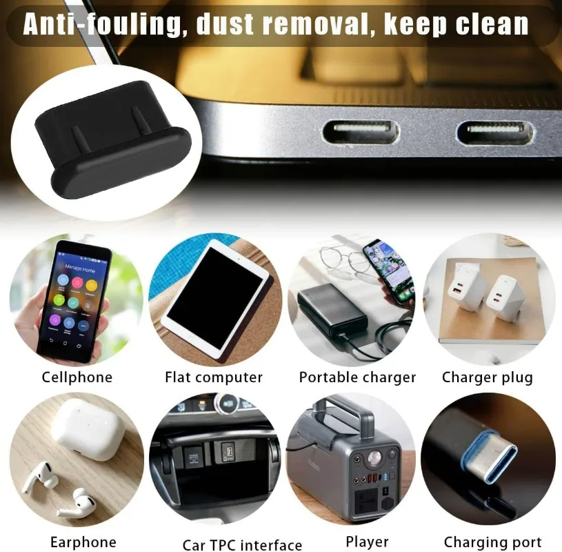 シリコーン Type-C ダストプラグ防塵キャップ USB C 充電ポートプロテクターキャップ クリーニングブラシ付き IPhone Samsung Xiaomi Huawei 用 - TopDealBox