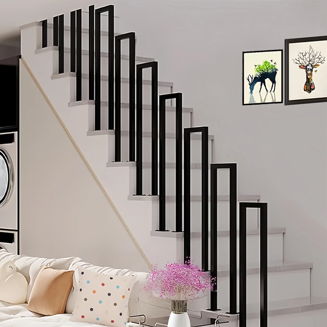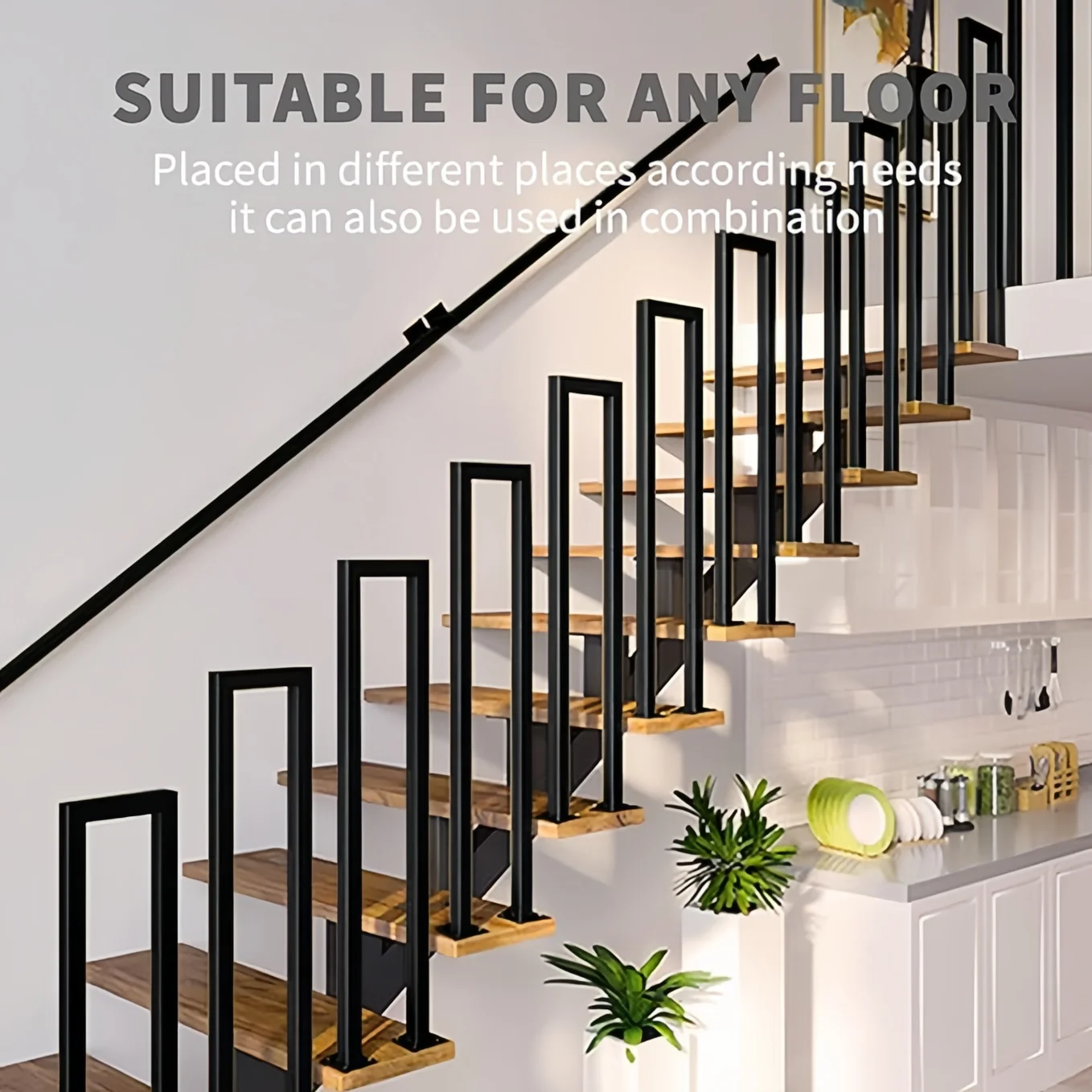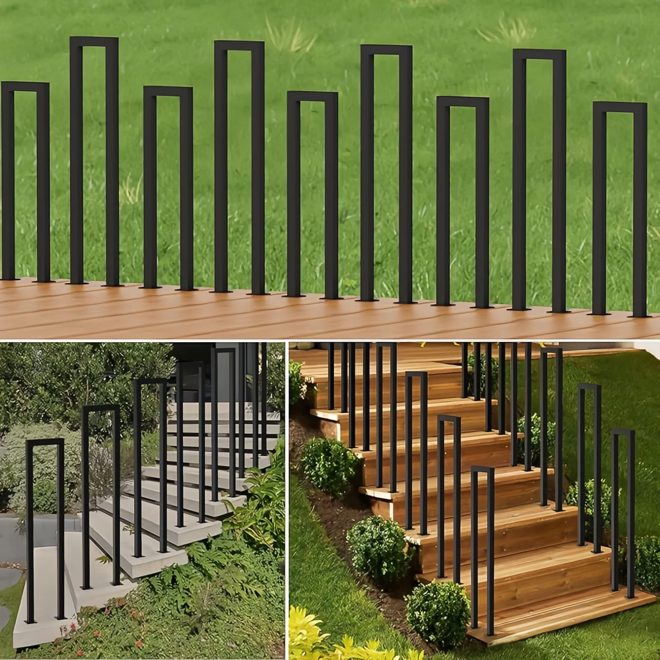屋内および屋外のステップ用のU字型階段手すり、高齢者および子供用の滑り止め安全階段手すり、床置き黒鍛造鉄ステップ、1個