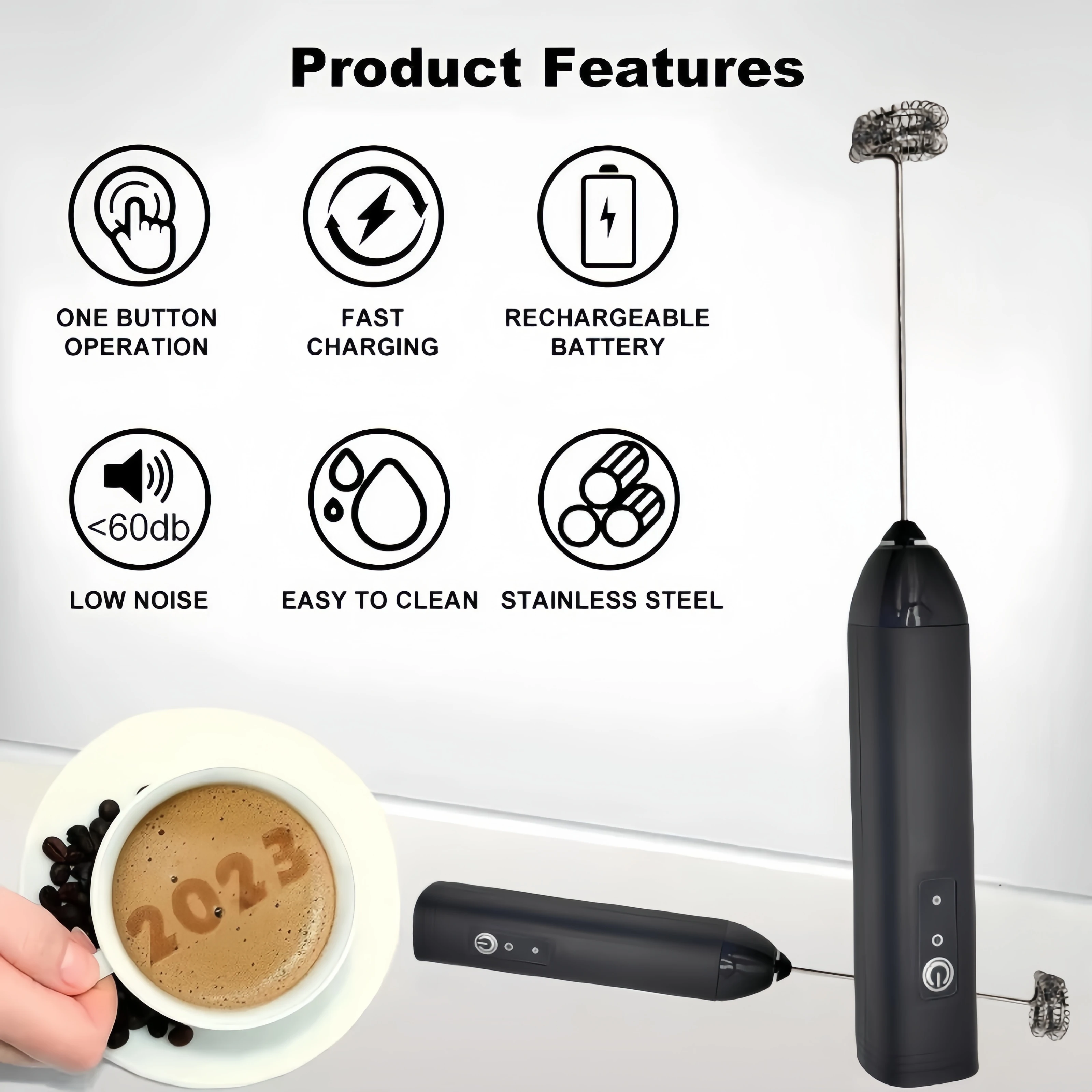 ミニミルク泡立て器 USB 充電式 3 スピード泡メーカーコーヒー泡立て器ミキサー電動ハンドルブレンダーエッグビーター - TopDealBox