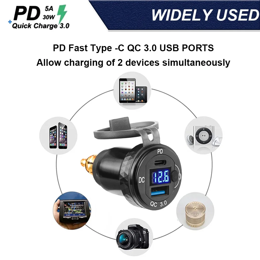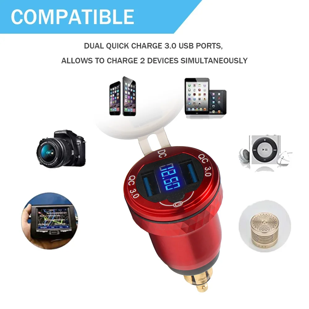 デュアルUSB充電アダプター,12V,qc3.0,タイプc,pd,din,hella,LEDディスプレイ,bmw f800gs,r1300gs,r1200gs,ducati,tiger 900, 850 - TopDealBox