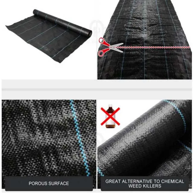 黒色の雑草防止シート、高級生地、頑丈な織り地の地面用布、優れた通気性、雑草対策、便利なデザイン