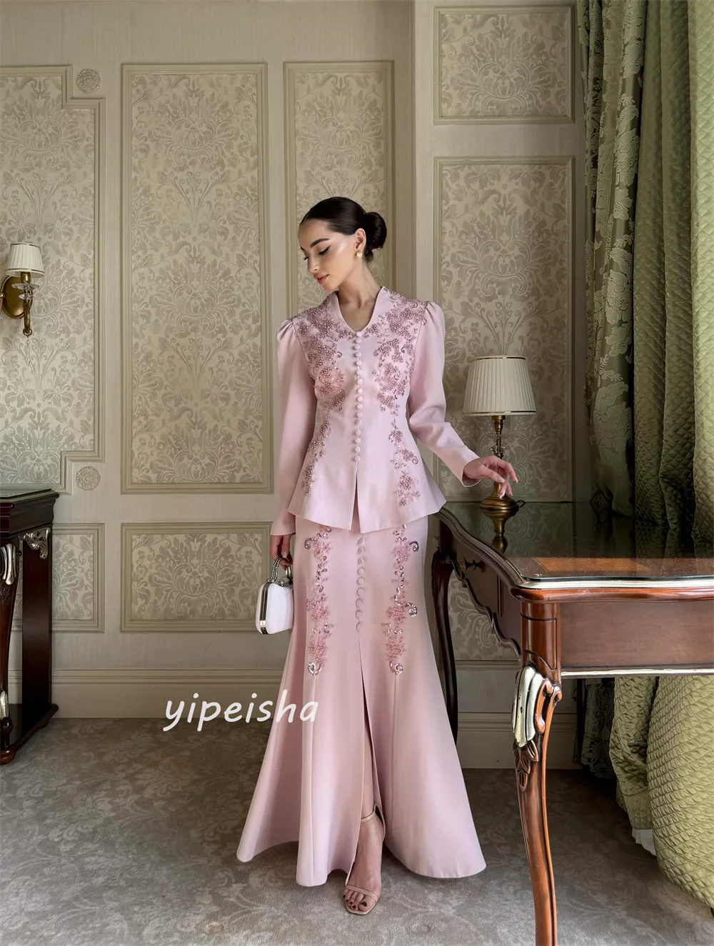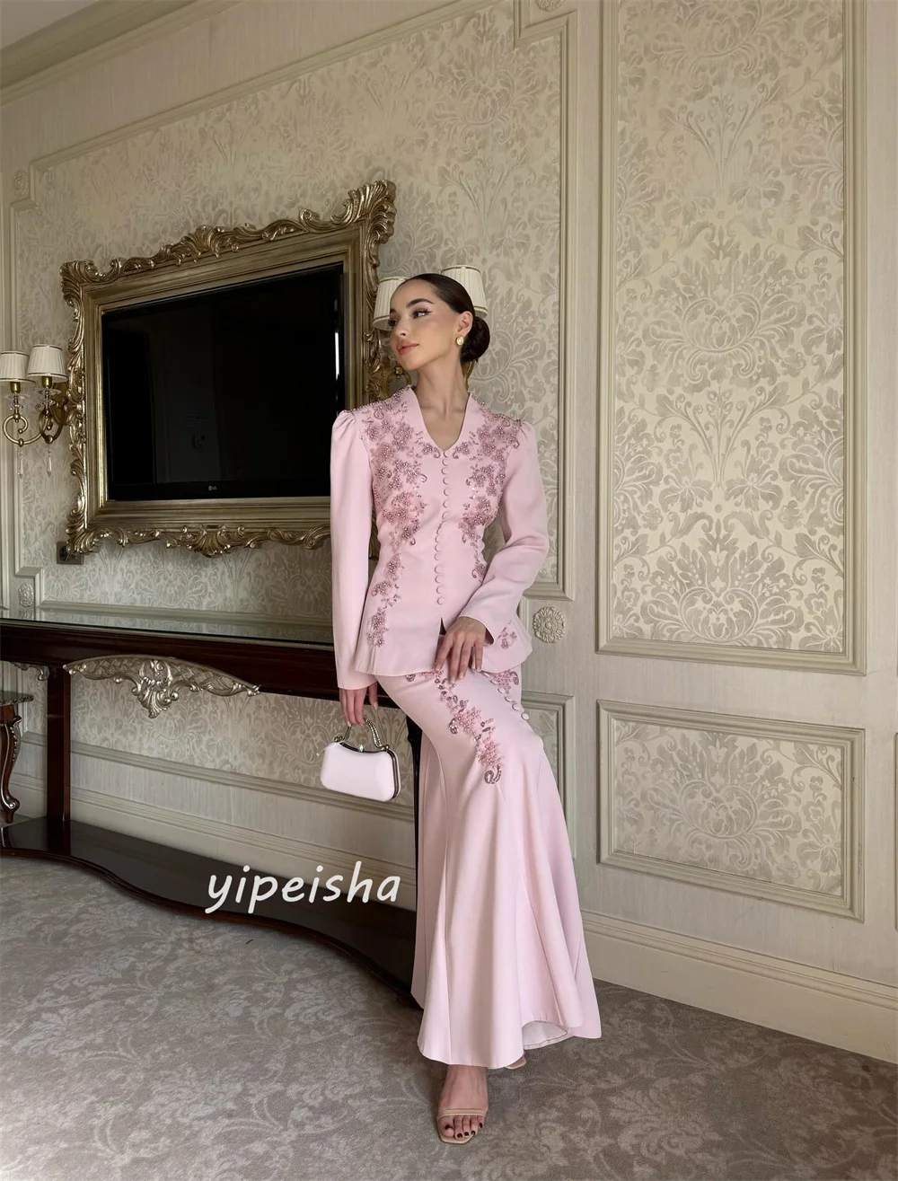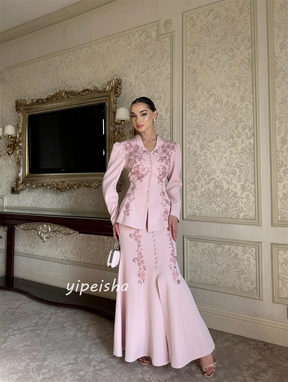 ♡Quick viewカスタマイズされたクラシックな絶妙なジャージー スパンコール プリーツ トランペット V ネック ロング ドレス オーダーメイドの特別な機会のファッション18046 JPYHot★★★★★5.0