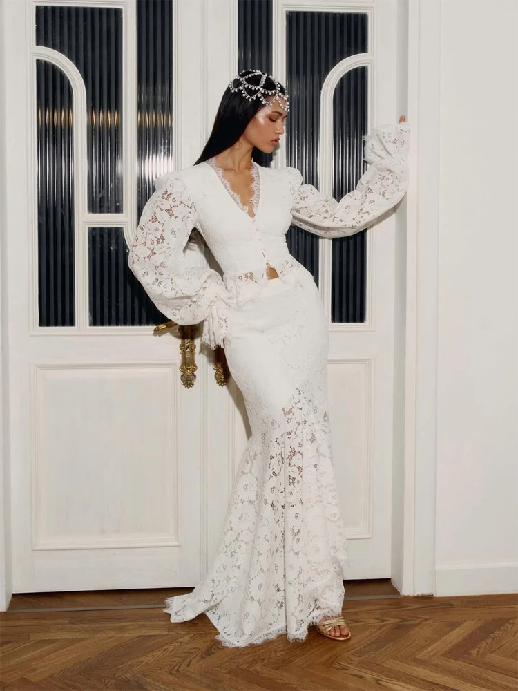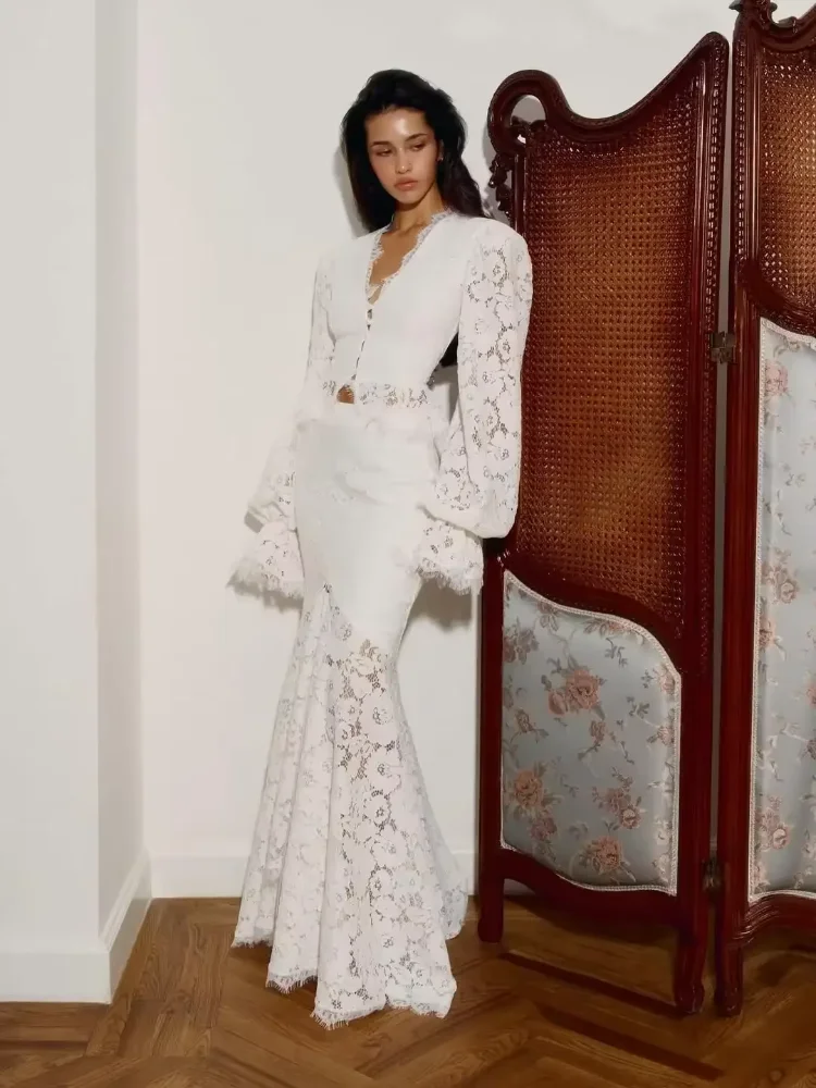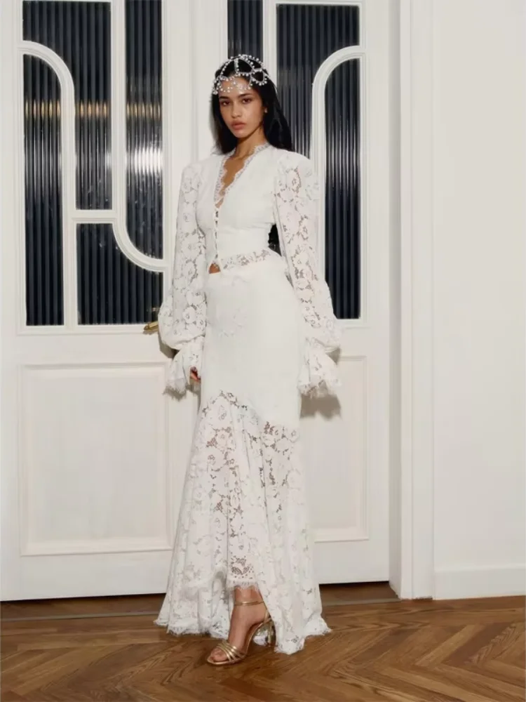 ♡Quick viewエレガントな女性用ソリッドホローアウトレースミニドレス、シックなハイカラーフレアロングスリーブ、ベスティドス2025、ニューレディナイトパーティー クラブガウン1657 JPYHot★★★★★★5.0