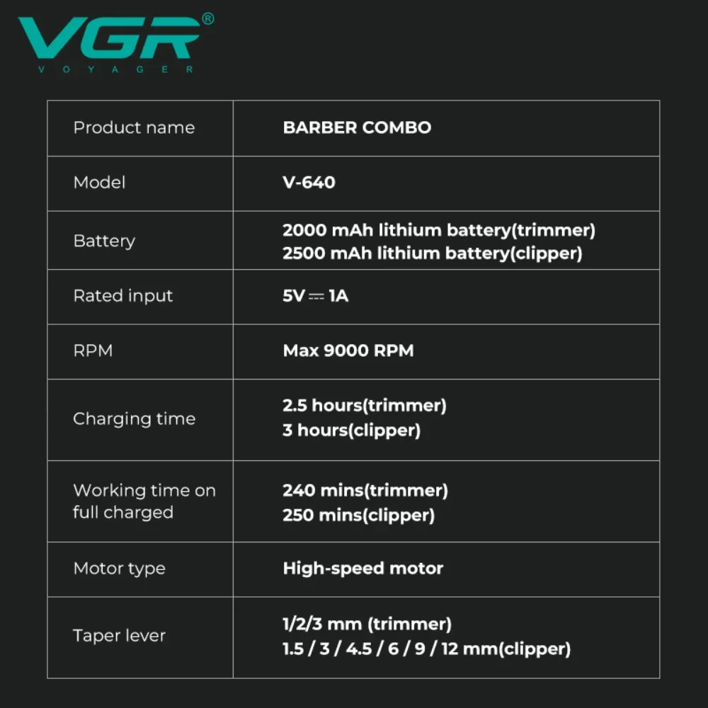 VGR ヘアトリマー プロ仕様 トリマー 充電式 ヘアカットマシン 9000 RPM ヘアクリッパー 調節可能な理髪師 ヘアクリッパー V-640 - TopDealBox