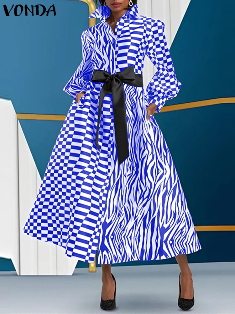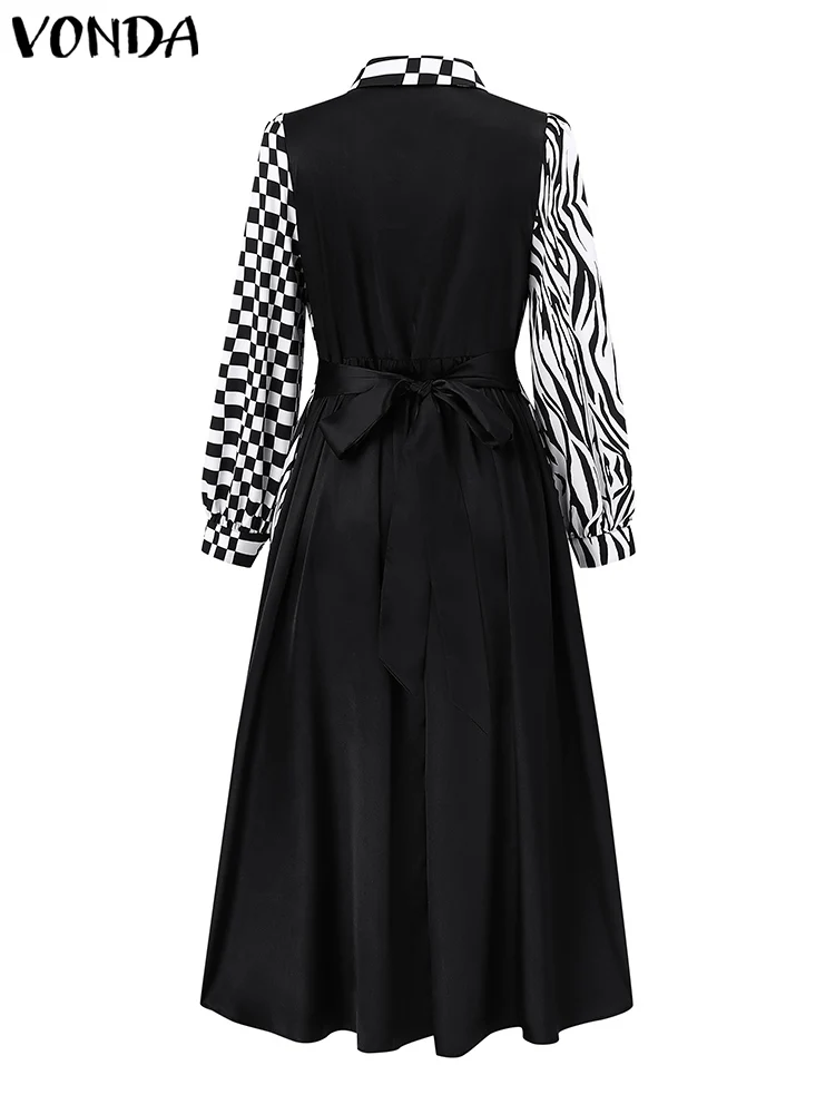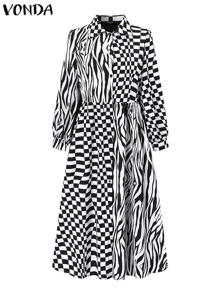 Vonda-女性のためのエレガントな長袖シャツドレス,オフィスウェア,カジュアル,ラペルカラー,プリント,パーティー,ラージサイズ,2024 - TopDealBox