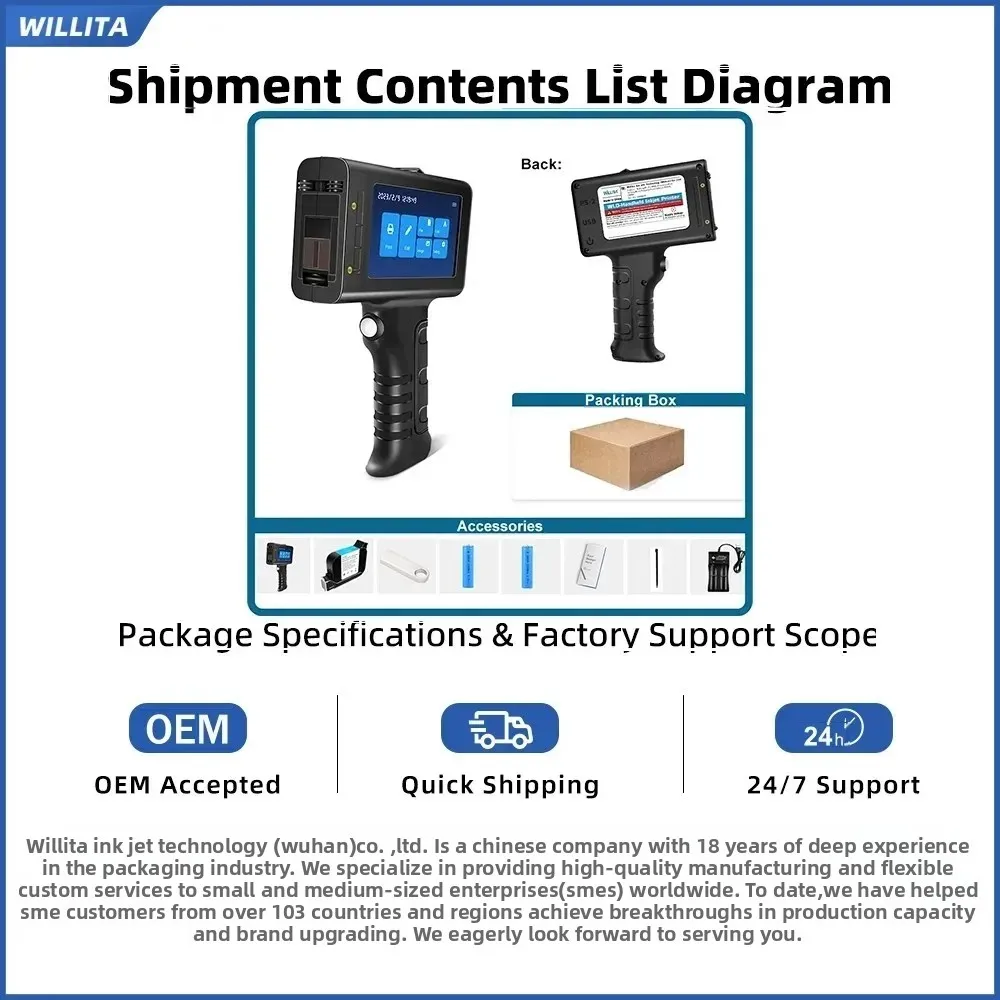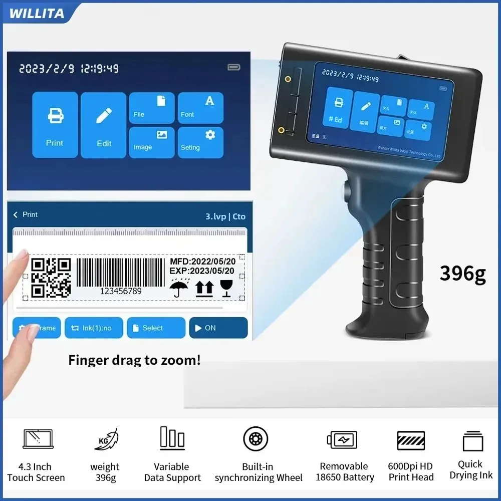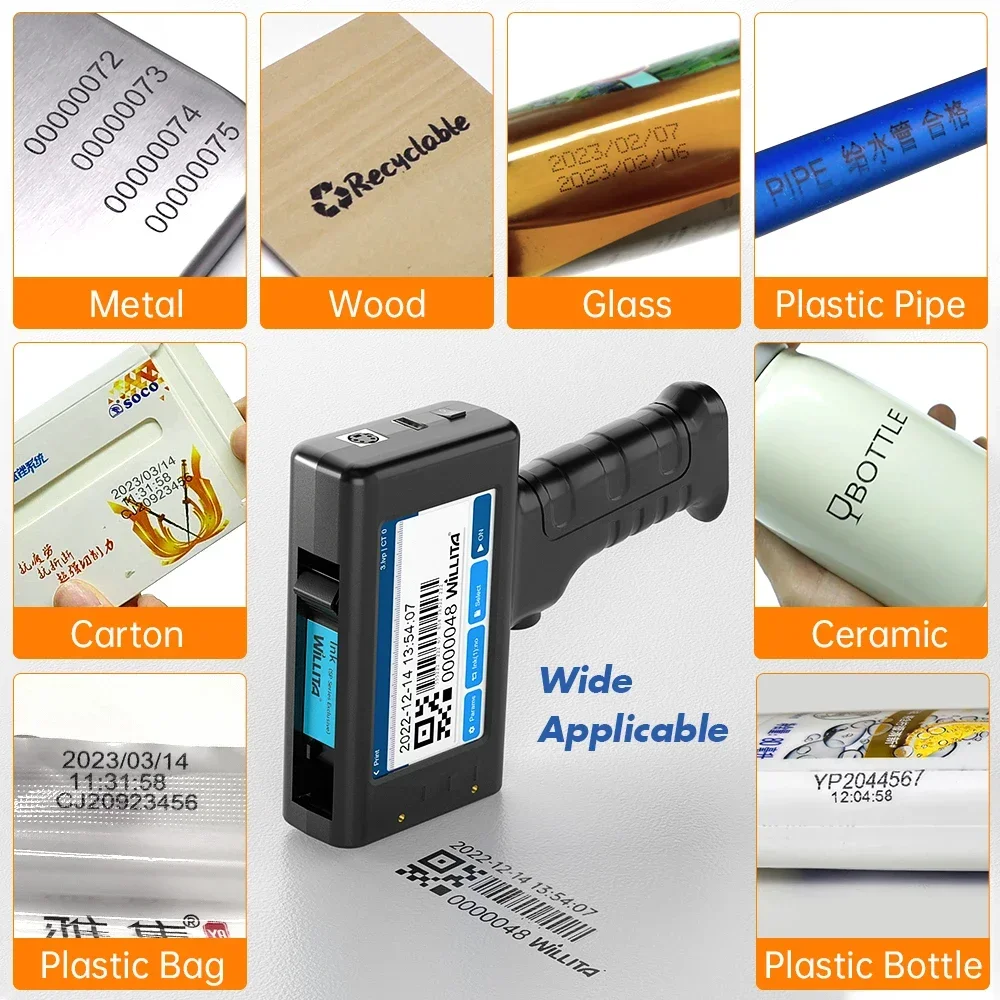 WILLITA L1 ハンドヘルドインクジェットプリンター 12.7mm ポータブルマーキングマシン QRコード バーコード バッチコード 日付 番号 ロゴ 有効期限 ラベル EU在庫 - TopDealBox