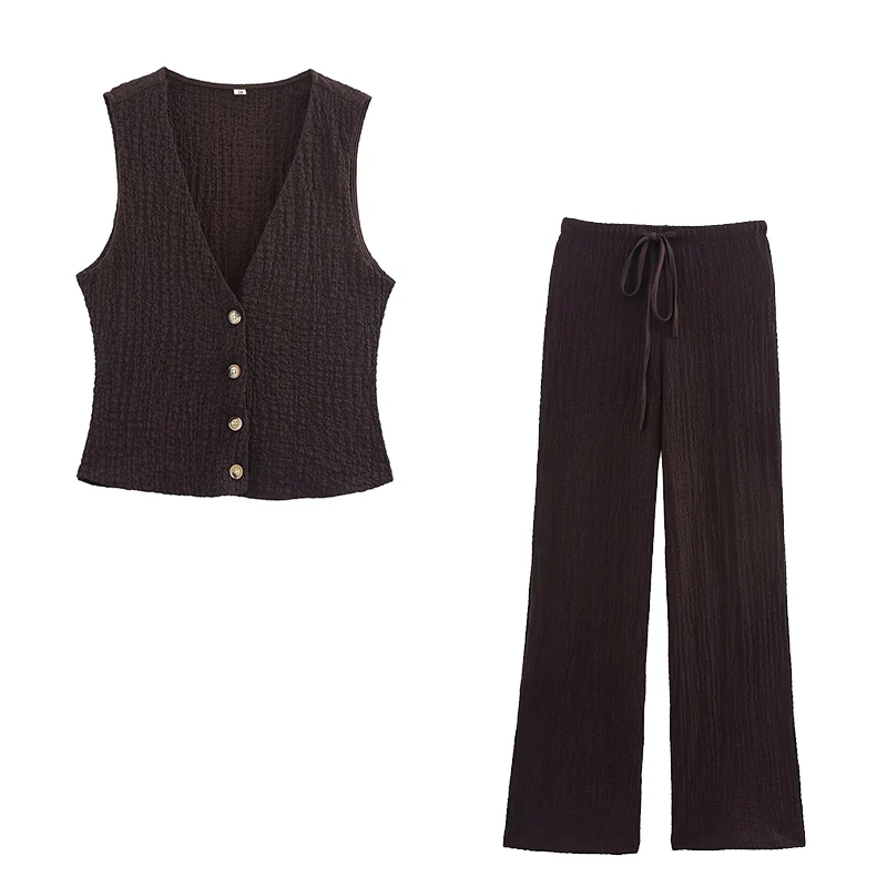 ♡Quick viewTRAFZA 女性 2 点セット V ネックノースリーブボタンニットベストトップ + エレガントなスプライシングハイウエストジッパーロングスカートホリデースーツ2485 JPYHot★★★★★★4.6