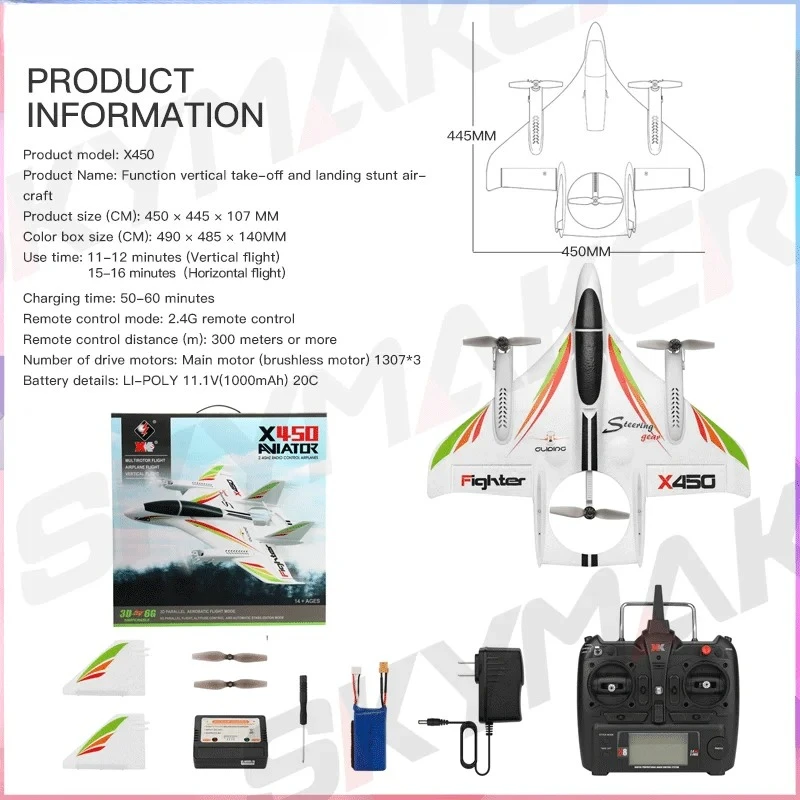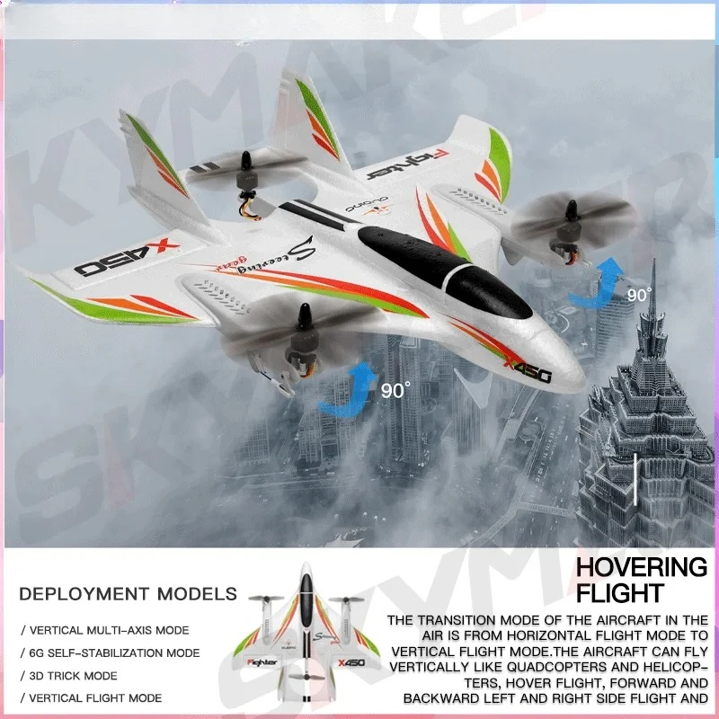 Wltoys XKS X450 RC飛行機 2.4Gリモートコントロール 3D 6G 6CH固定翼 LED垂直離着陸RC航空機 RTF 大人向けRC飛行機 - TopDealBox