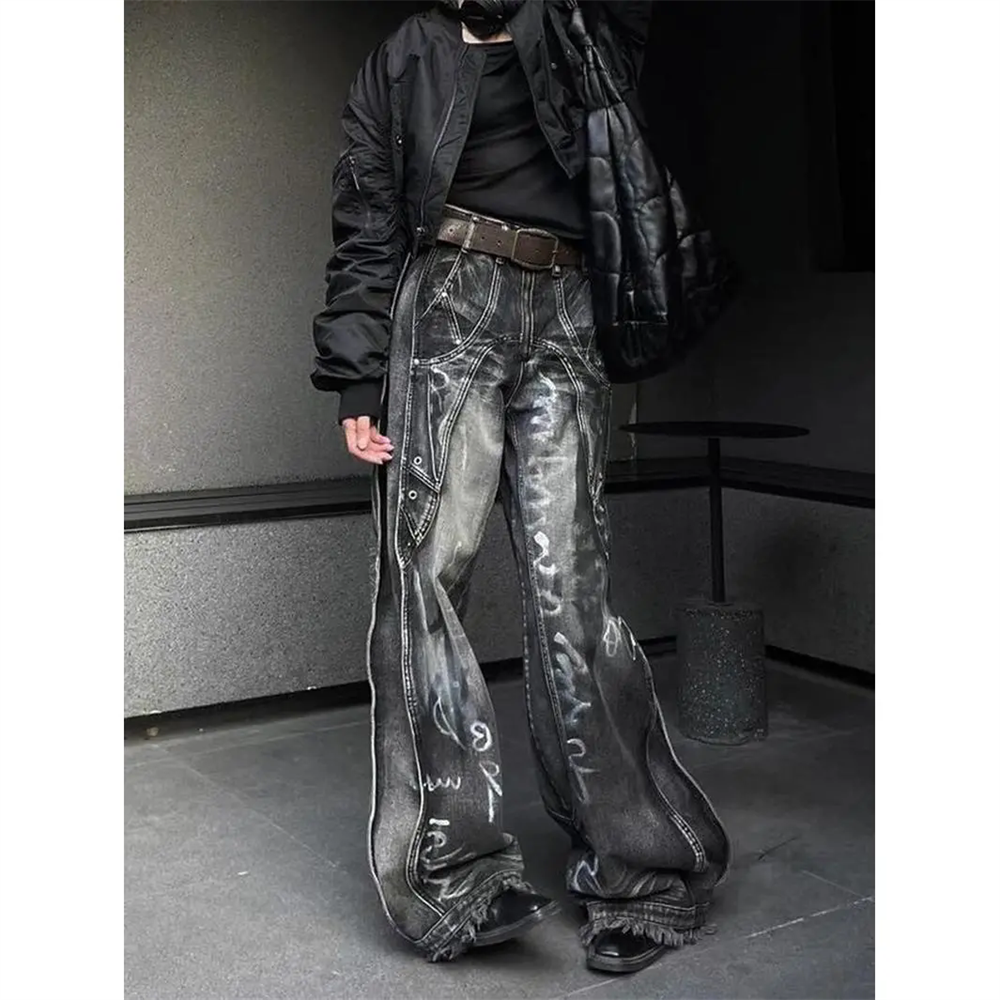 レディースヴィンテージカウボーイパンツ,原宿ストリートウェア,デニムパンツ,y2kグラフィティジーンズ,バギー,ヴィンテージ,特大,エモ,2000s,トレンド,2024