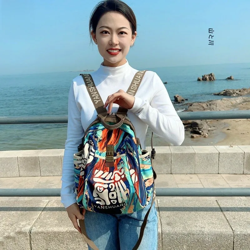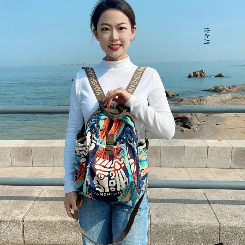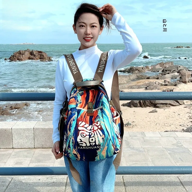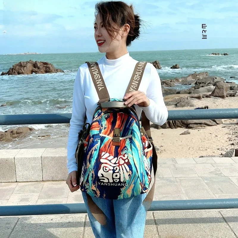 Yan Shuang オリジナルブランド防水カジュアルハイエンドファッション通勤バックパックトレンディな中国風の多用途ソフトショルダーバッグ - TopDealBox