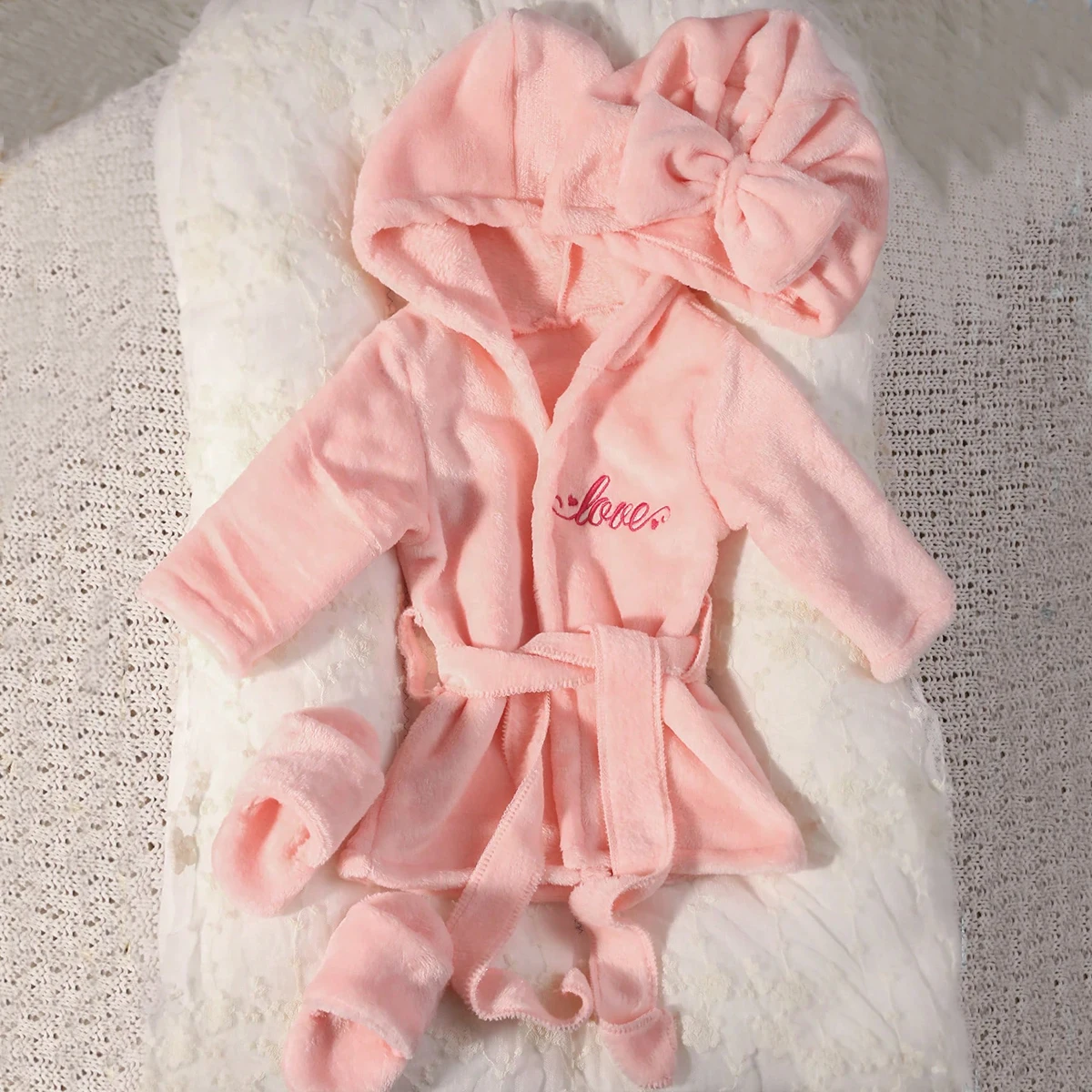 Ylsteed 新生児写真撮影バスローブ ターバン帽子とスリッパ付き 愛の刺繍 女の赤ちゃんパジャマガウン 幼児写真撮影衣装 - TopDealBox