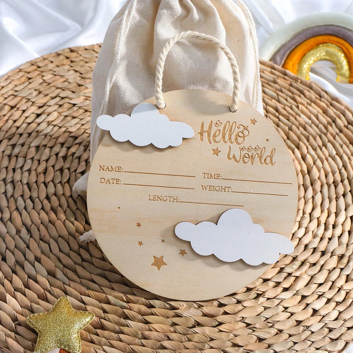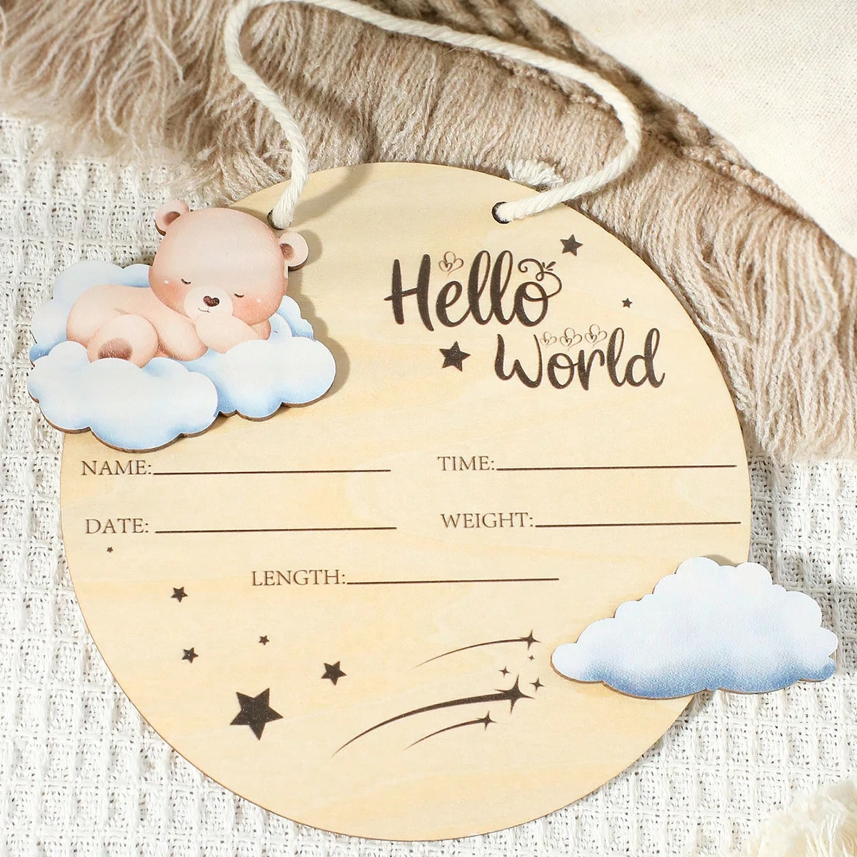 Ylsteed 1PC 新生児写真プロップ木製ハローワールド星空新生児木製吊り小道具かわいい誕生ボード赤ちゃん発表 - TopDealBox