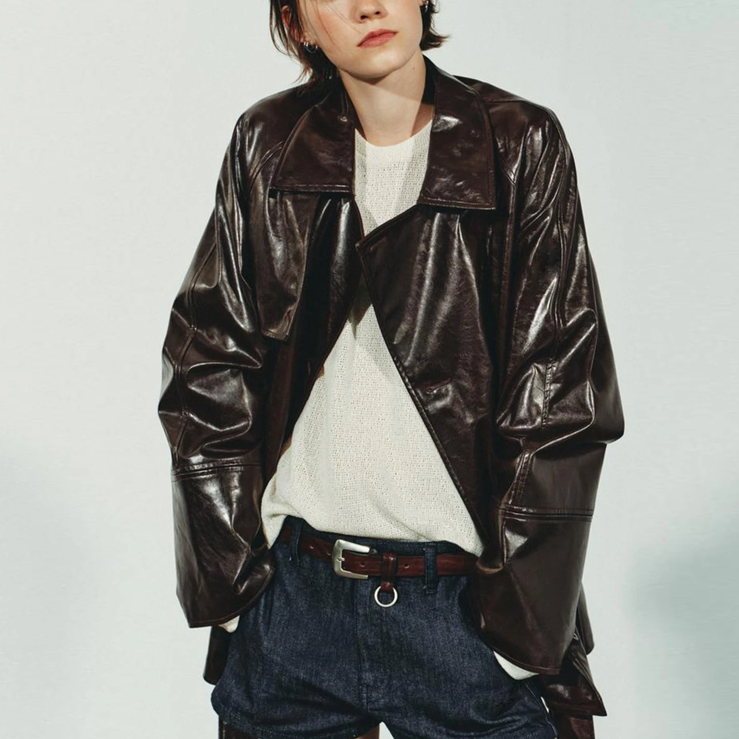 ♡Quick view2025年秋新作 レディース カジュアル ルーズ ショートレザージャケット 襟上げ アウター ファッション レディース プレミアム ショートコート ボタン留め2165 JPYHot★★★★★5.0