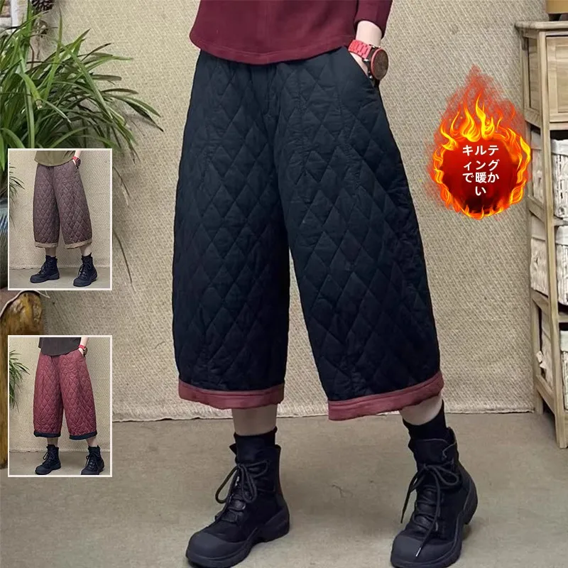 レトロファッションダイヤモンドパターン綿ストレートレッグカジュアルパンツ大きいサイズの女性の冬暖かい上着ブーツカットズボン