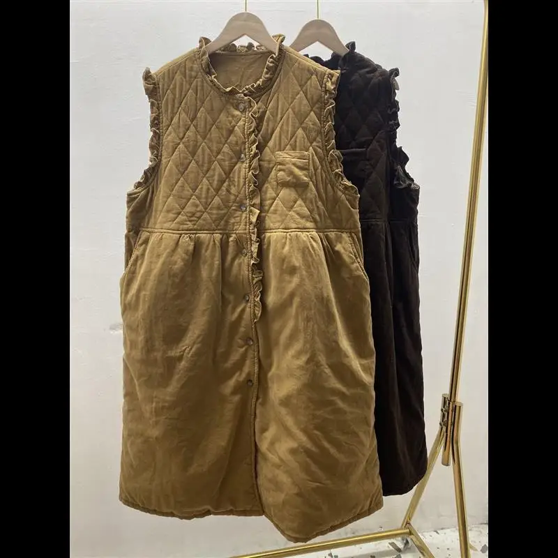 肥厚綿レーススリーブベストスカート和風ミッドレングス A ラインドレスプラスサイズの女性の秋のシーズンファッション