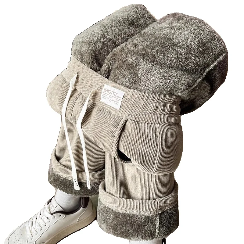プラスサイズ北極フリース裏地肥厚ストレートレッグパンツ女性の秋冬暖かい綿パンツコーデュロイ痩身ワイドレッグパンツ