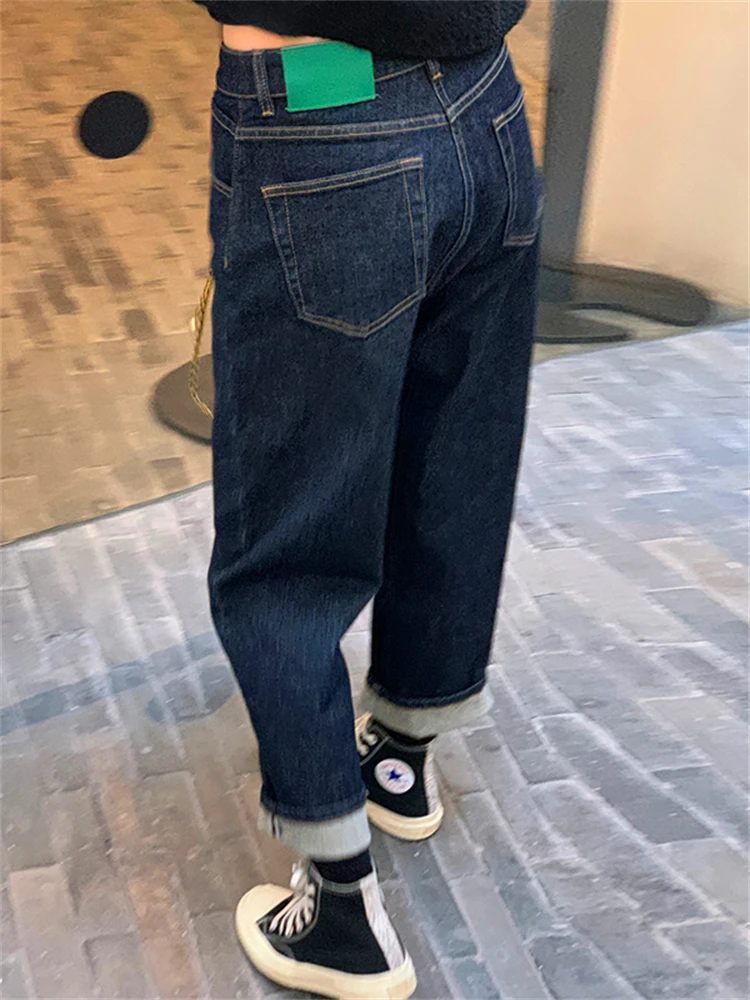 ハイウエストストレートレッグジーンズ女性の洋ナシ形多用途プラスサイズルーズ痩身ハーレムパンツ厚い秋シーズン